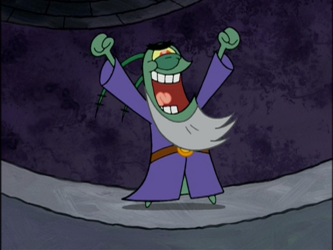 Planktonamor is a medieval ancestor of Plankton, who is an evil wizard and appears in the episode "Dunces and Dragons." He was the owner of the medieval king jellyfish, who he would send out to destroy the town unless King Krabs gave him the power. After kidnapping Princess Pearl Krabs, SpongeBob was sent out to fight him to the death, winning by stepping on him.
