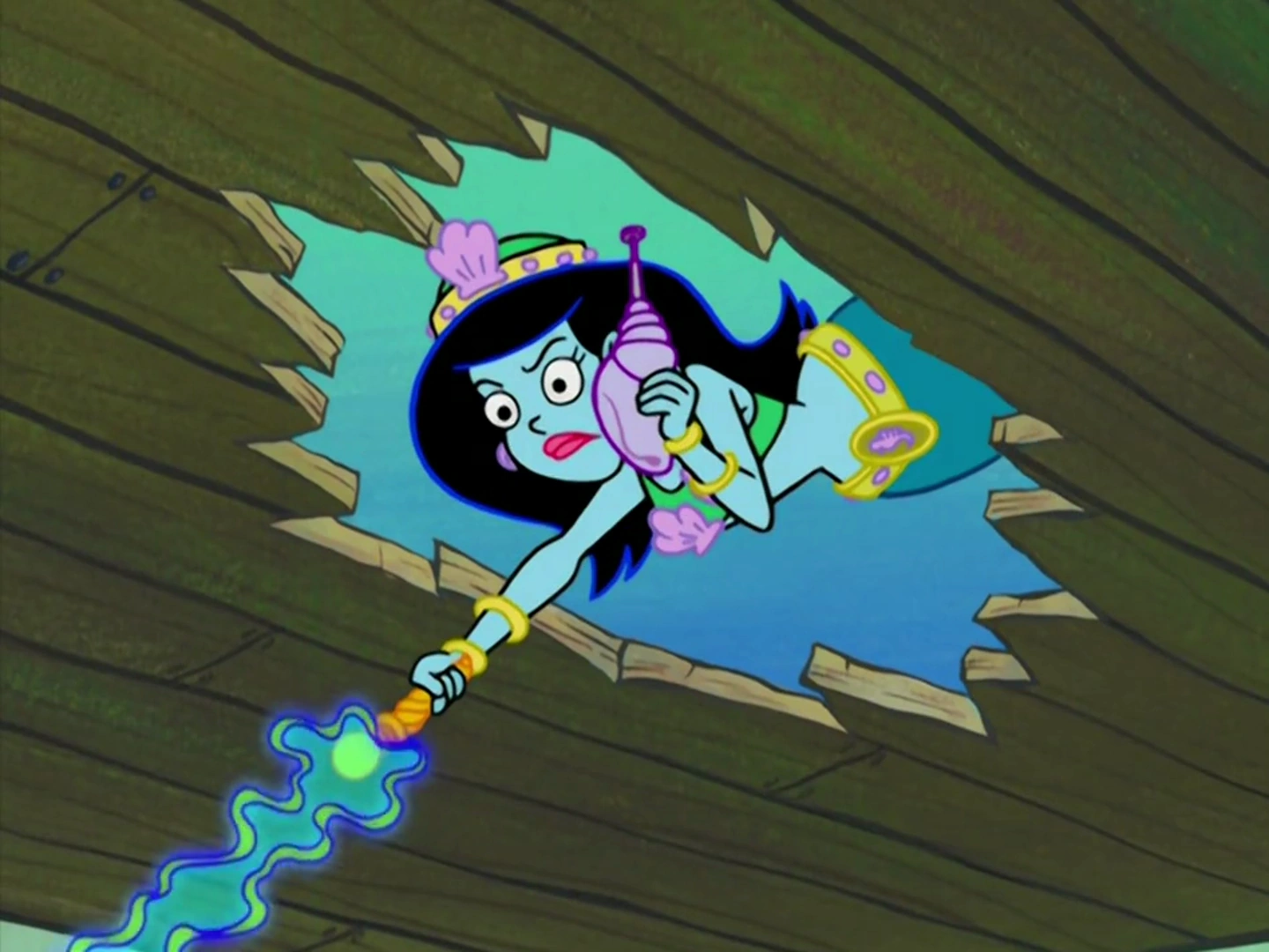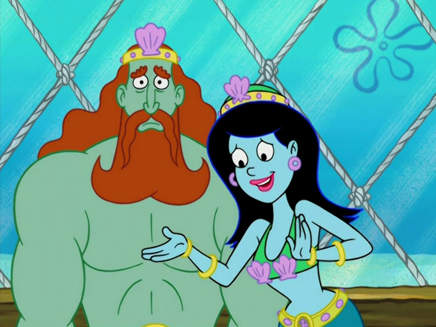 She tries all she can to cheer King Neptune up for his birthday. She knows their son, Triton, is very un-kingly and tries to be a normal boy, and that worries her since they are gods. She seems to have a negative attitude towards Mr. Krabs and continually zaps and scolds him.