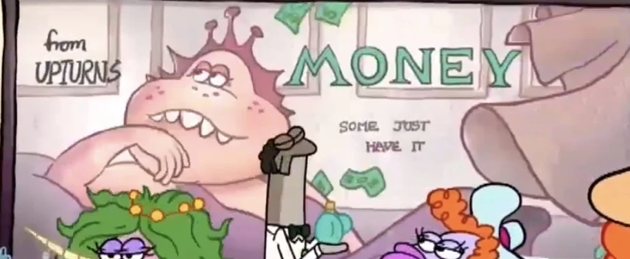 She is woken up by Squidward's terrible clarinet playing, and she sticks money in her to block out the sound. She is later seen dancing with Roh and being served breakfast after she is woken by the Anchovellie.