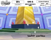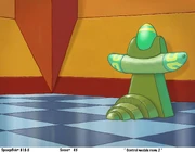 However, SpongeBob accidentally destroys the statue that is delicate. As a result, the room falls apart and the whole building follows suit.