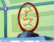 They come to a holographic projector, which Sandy touches. A crystal comes out and the crystal zaps Sandy's tail and bones are seen. The zap zaps another crystal and it shines on two diamonds. The diamonds come together in a tube shape. Three balls are shot out. They turn to robots. Two of them zap SpongeBob and Sandy. They float in zap bubbles to a room.