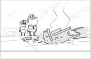 Eventually, they stop the truck and pick up large heaps of trash and put them into the truck. While cleaning up trash, the two find a creepy doll. When Squidward tells the doll to start doing than wanting, the doll says it wants to destroy him, scaring him and throw the doll out. Eventually they clean all of Bikini Bottom, and just need Patrick's trash. However, Patrick won't give it up, forcing Squidward and SpongeBob (who activate the truck's battle mode, transforming it into a combat robot) to battle Patrick (who is using trash as a battle armor) for the trash. The battle causes so much mess Bikini Bottom becomes filthy again.