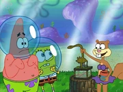 When SpongeBob asks Sandy about the lump in Snakey's stomach when she showcases the snake to him, she says it is a mouse that she fed him before, but Sandy refers to the mouse as his "dinner." SpongeBob pokes the belly with the mouse inside; the mouse shrieks.