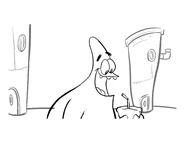 - SpongeBob's shouting audio when he gets kicked out by Mrs. Puff is reused from a season 4 episode, "Have You Seen This Snail?"