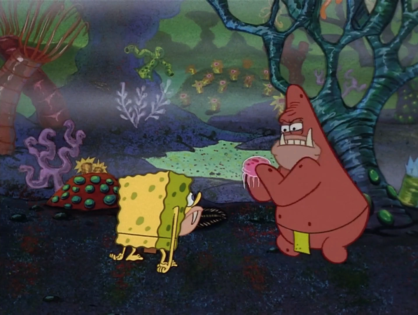 - SpongeBob (primitive) later appears in The Cosmic Shake as a costume for SpongeBob, being known as PrimitiveBob.