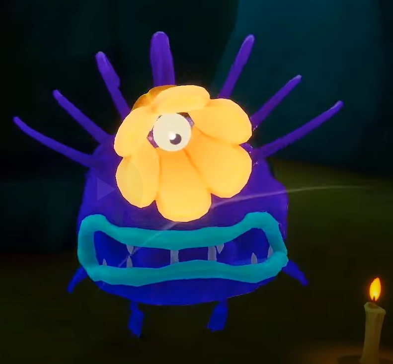 Spooky Jellies are purple anglerfish-like creatures with one eye in a spotlight with a lamp shade around it.