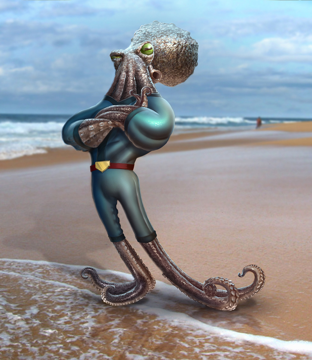 Concept art for Squidward as Sour Note, depicting him as a realistic giant Pacific octopus.
