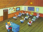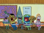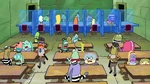 She tells SpongeBob that she doesn't want to report him because he asks her how to arrange his pencils. She then tells him to stick a pencil into something but SpongeBob interrupts her before she can finish her sentence.