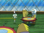 She appears in the winds section at Squidward's band practice where she repeats Squidward's clarinet tune. She later calls SpongeBob a talking cheese before the big fight starts.