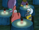 Multiple cameos; she is seen booing SpongeBob, Patrick, and the Goofy Scoopers.