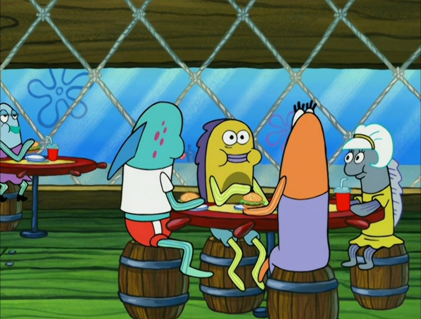 She is seen at the Krusty Krab with Fred as they spit their food out when they hear Mr. Krabs say that Mystery the Seahorse was in the kitchen.
