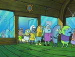 She waits in line at the Krusty Krab at the beginning of the episode.
