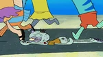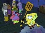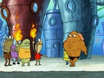 SpongeBob shrinks her with Mermaid Man's belt after she greets him. Later when the Bikini Bottomites attack SpongeBob, she chops one of his lungs. Lastly after SpongeBob shrinks the entire city, she tells him that this was a good idea.