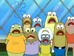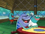 She is one of the ladies who asks Larry the Lobster if they can feel his muscle. She also appears as one of the fish who go to the tanning booth with Larry. She lastly appears in a boatmobile with Incidental 27 about to eat a hot dog together until SpongeBob steals their boat but returns their hot dog.
