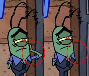 - In the scene where Suzie tells Plankton to dance with his hips, his left arm is disconnected from his body for a while, and then disappears.