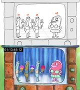 - SpongeBob's house, Squidward's house, and a snail that looks like Gary appear as framed photos on the wall of the Tattoo Removal clinic.