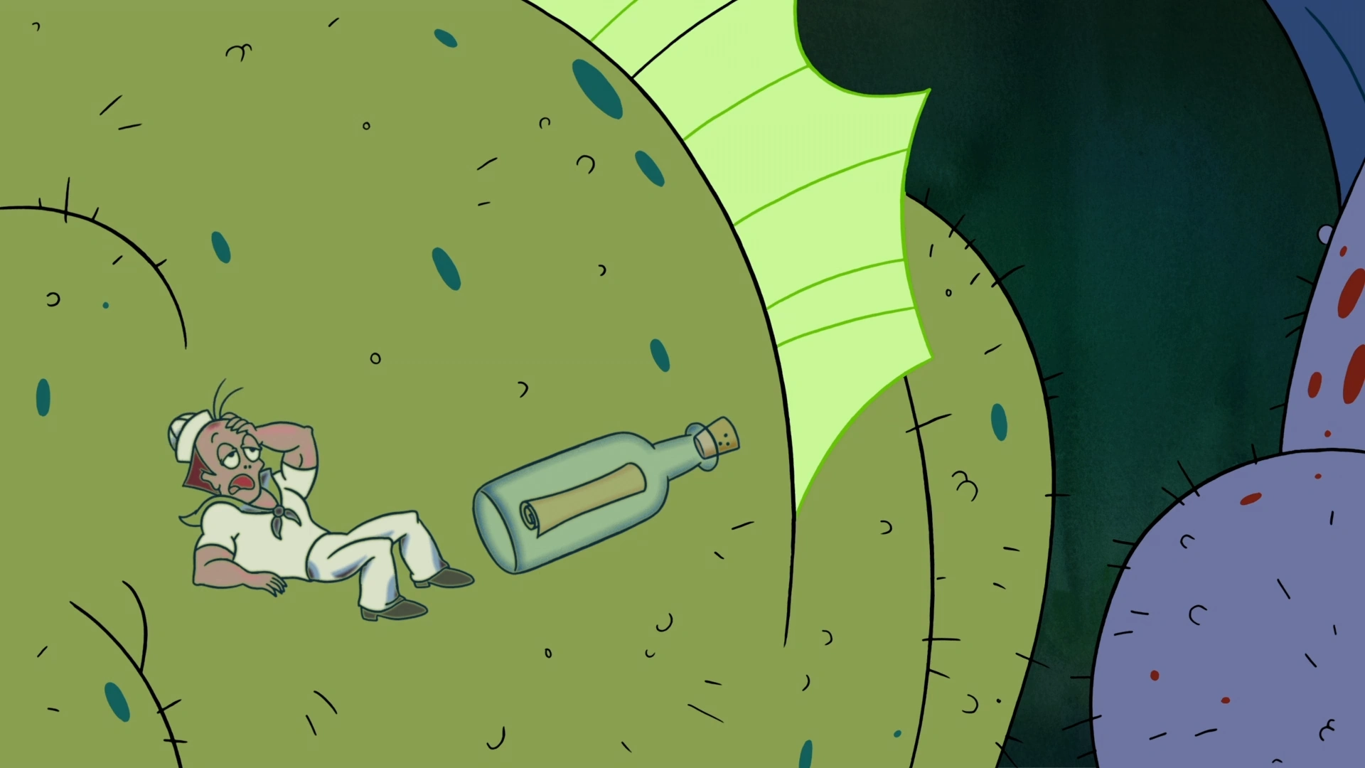 The mailman delivers mail to the Star house, when Bunny notices the bottle tattoo on his hand. She transfers it to her face and reads it with Leilani, who learns that Skip is trapped on a sailor in the Salty Spitoon. Skip fights off the sailor's tattoos when another fish demands he remove the tattoos due to the damage they cause. After he leaves, Cecil and Bunny arrive and ask about Skip. A fish tells them about the sailor, so Cecil and Bunny rush off.