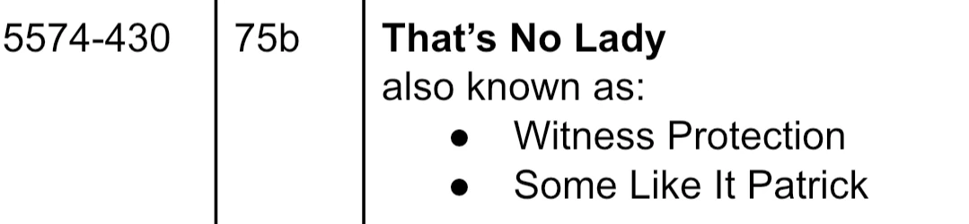 This episode was originally called "Witness Protection" and "Some Like It Patrick."
