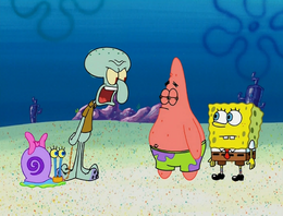 - When SpongeBob runs to help Gary in the race, Patrick's "snail" disappears.