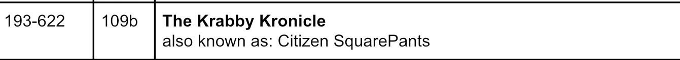- ^ SpongeBob Squarepants : 109, Boating Buddies, Krabby Kronicle. - United States Copyright Office