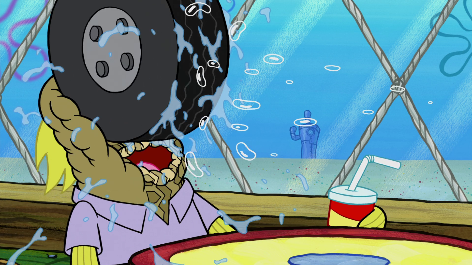 He is seen eating at the Krusty Krab during the opening of the episode.